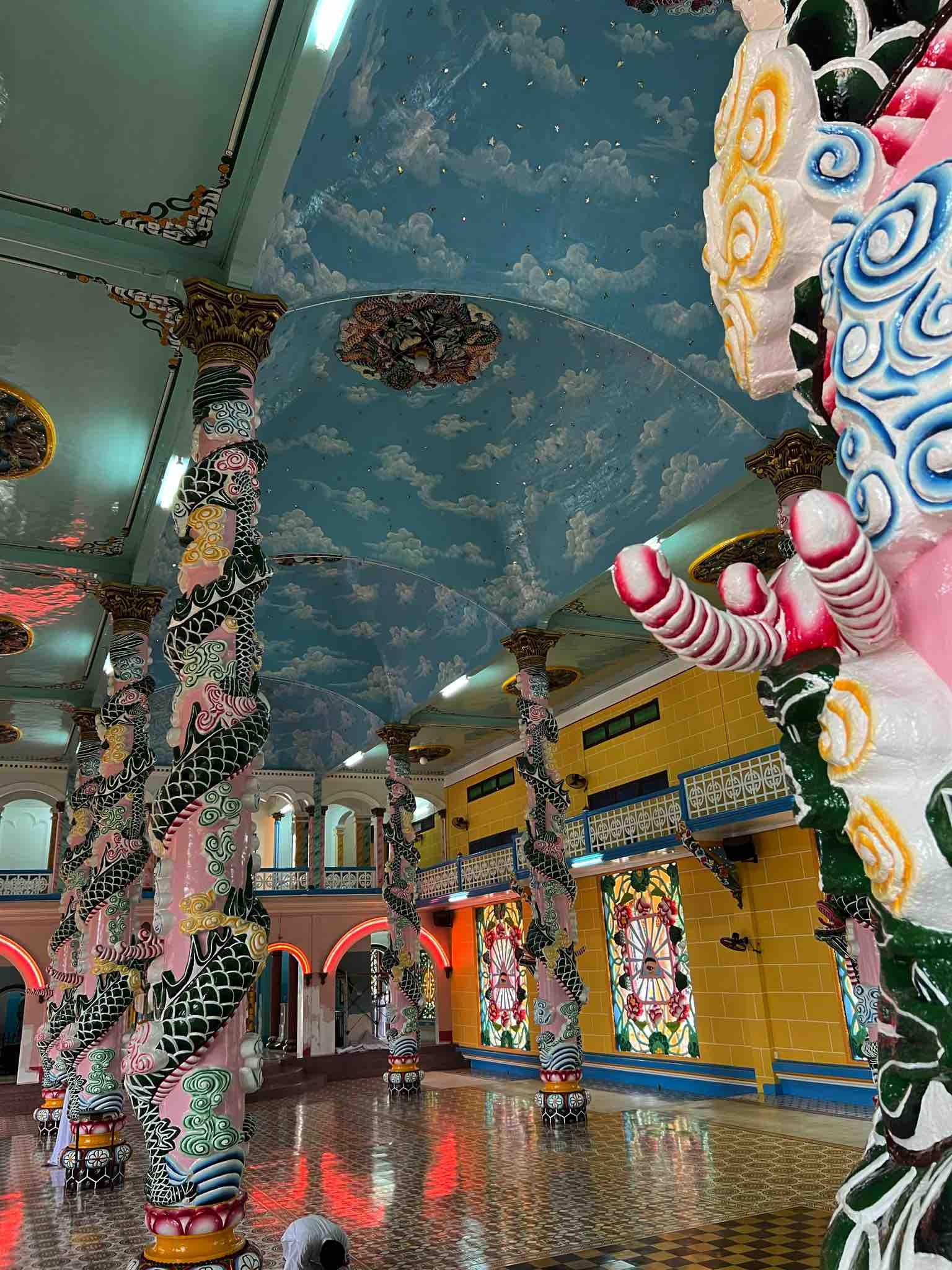 I am currently at the Great Cao Dai Temple in Tây Ninh – the spiritual centre of this religion, a place full of colour, mystical symbols and harmony of different traditions. Viet Nam, as the homeland of Cao Dai, has played a key role in its development. The religion was an important part of national identity, especially in the 20th century, when its followers played an important political and military role. Today, it is a testament to a unique spiritual path, connecting the East and the West in the search for unity and enlightenment. Its colourful, ornate architecture combines influences from different religious traditions, and the ceremonies held there attract both believers and tourists from all over the world.