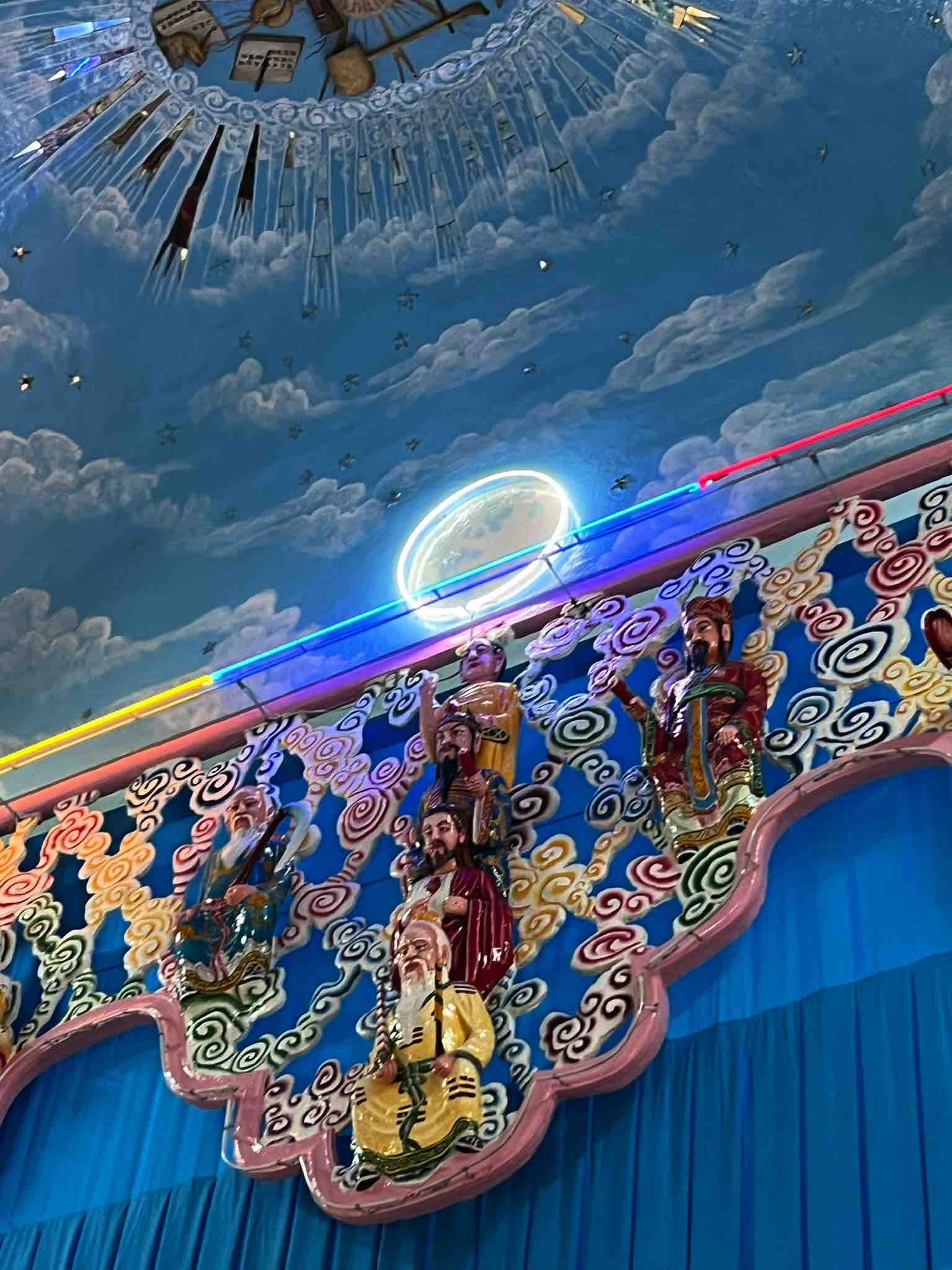 There are many mystical tales surrounding Cao Dai, and one of the most famous is the legend of the revelation of the All-Seeing Eye. It is said that Ngô Văn Chiêu, the founder of the religion, was meditating when he saw a dazzling light that gradually took the form of an all-seeing eye surrounded by an aura of divine power. A voice from the afterlife told him to spread the message of unity and spiritual enlightenment. This eye later became the religion’s central symbol, reminding the faithful of the constant presence of God.