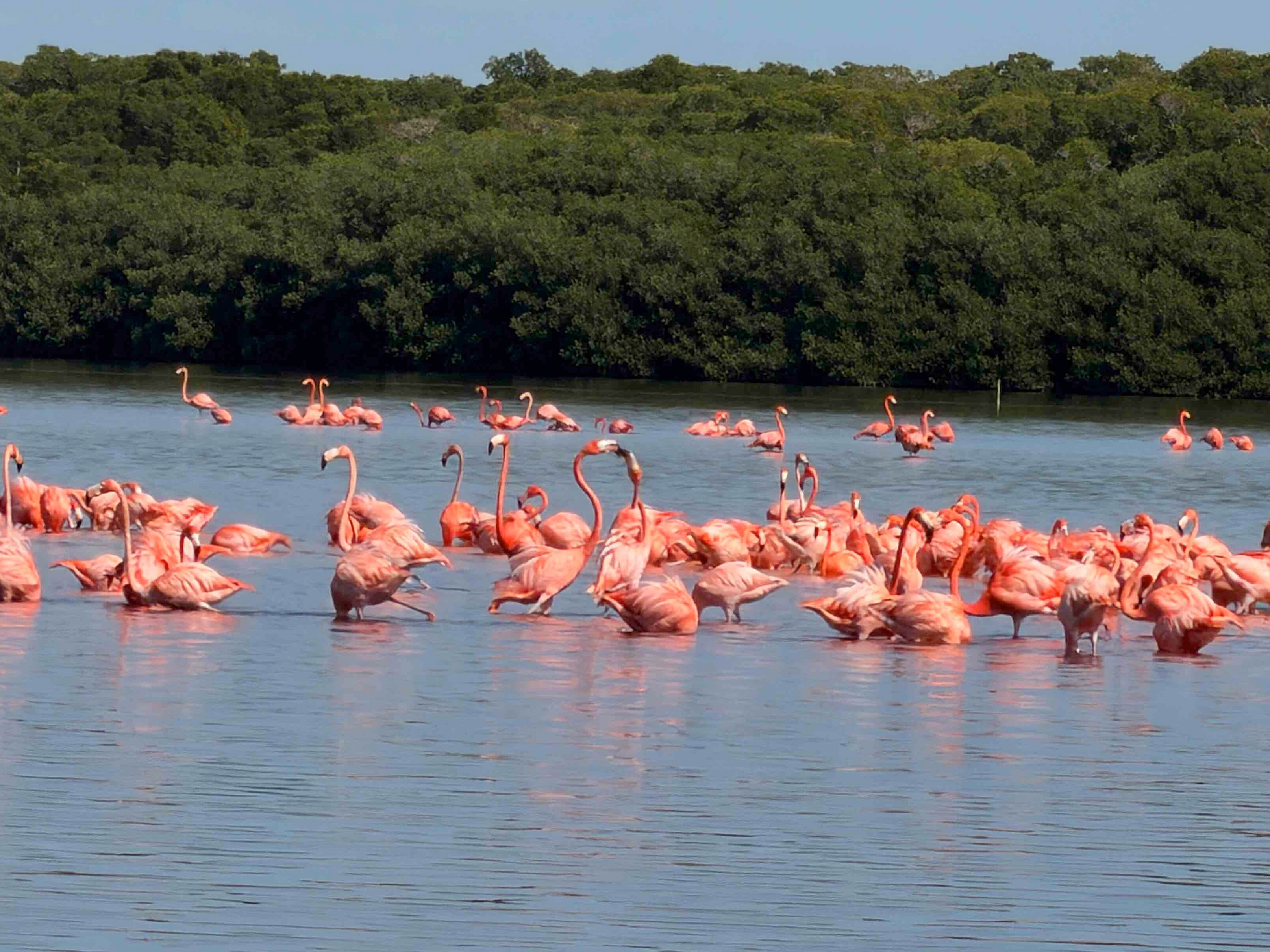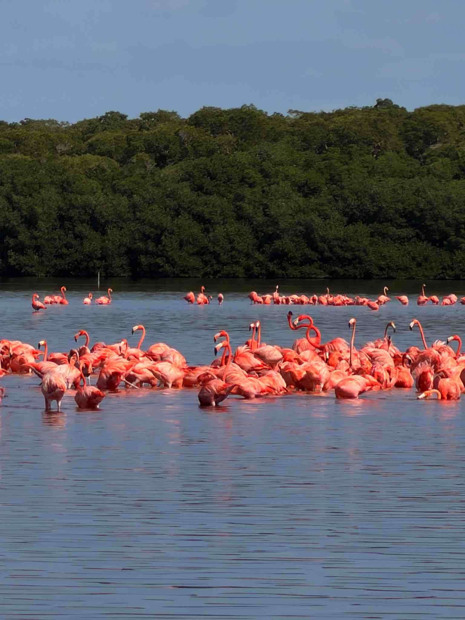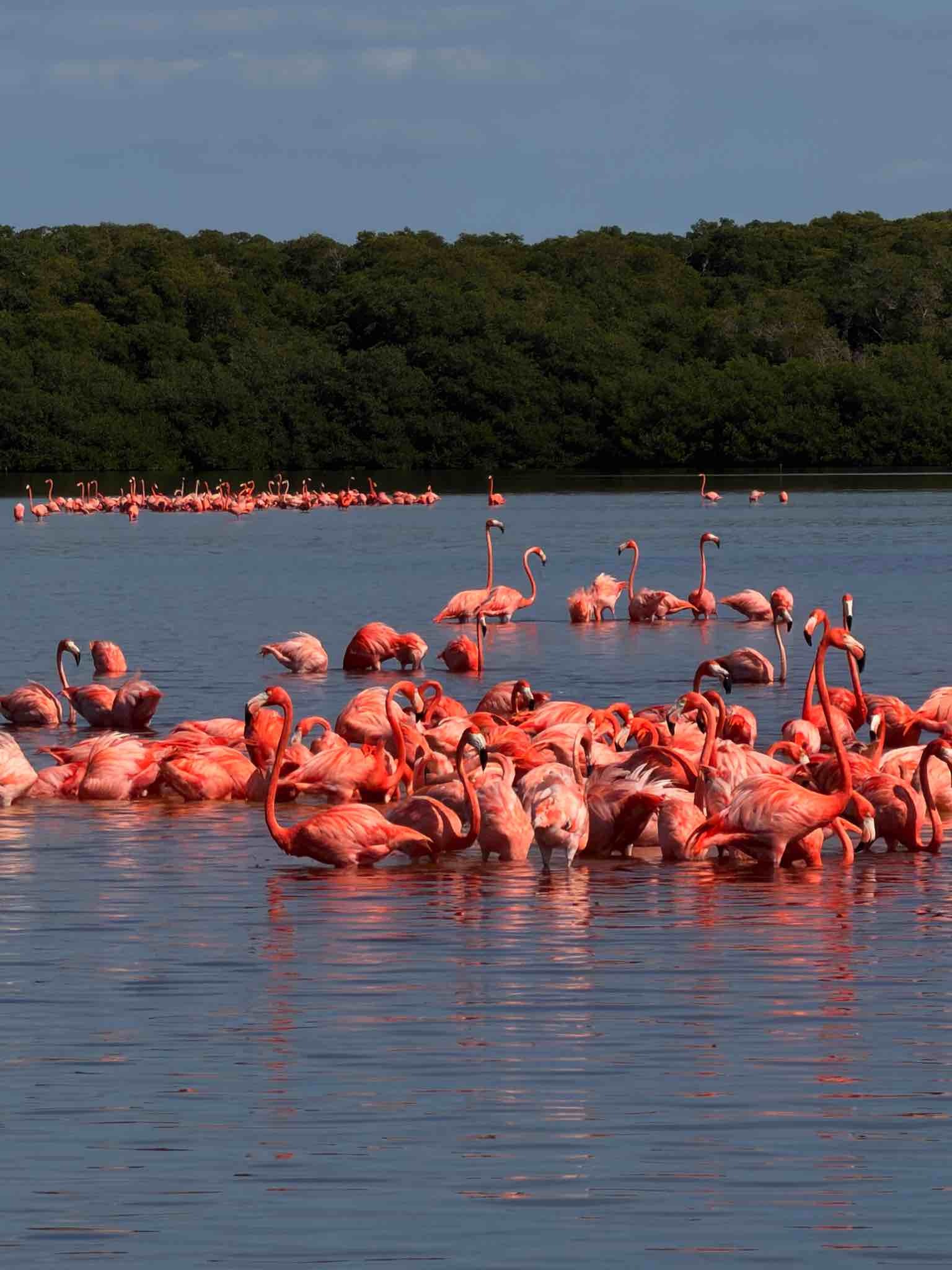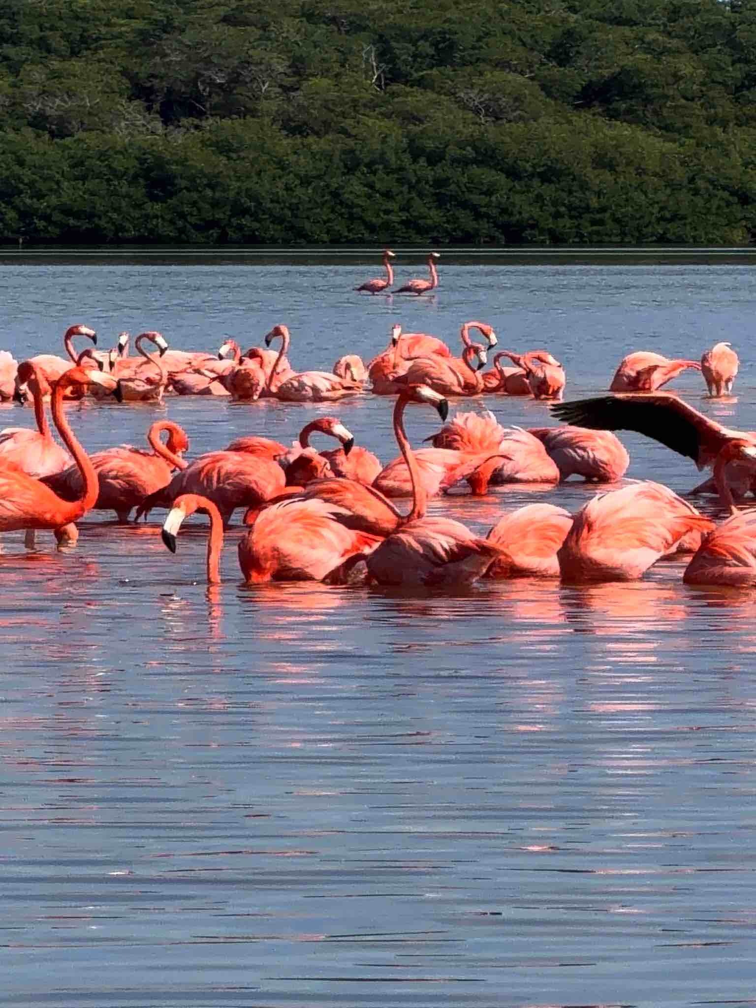 Celestún to jedna z największych kolonii flamingów w Ameryce. Zimą przybywa tu nawet kilkadziesiąt tysięcy ptaków, które żywią się drobnymi skorupiakami z laguny – to właśnie one nadają piórom intensywny, łososiowy kolor.