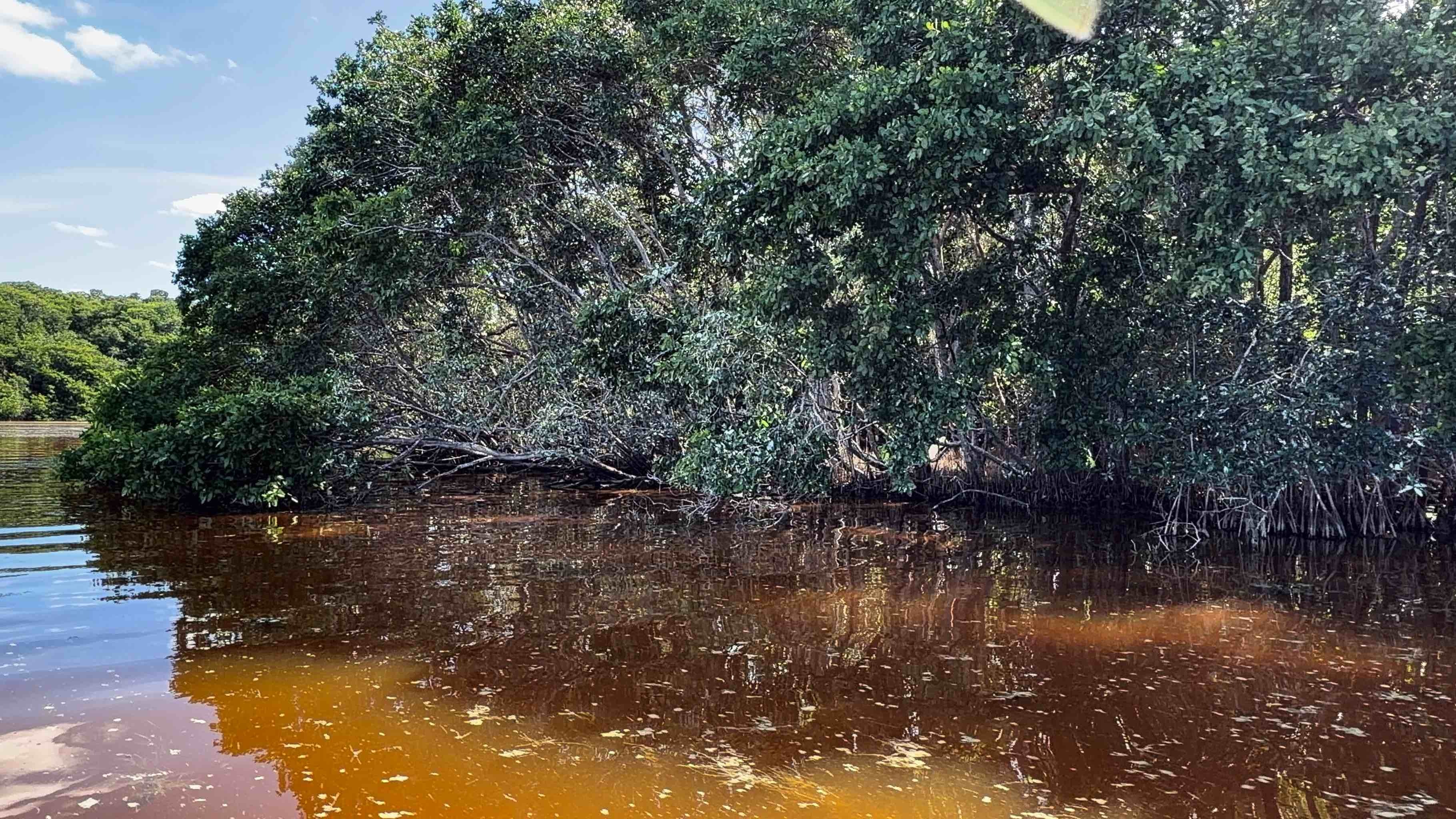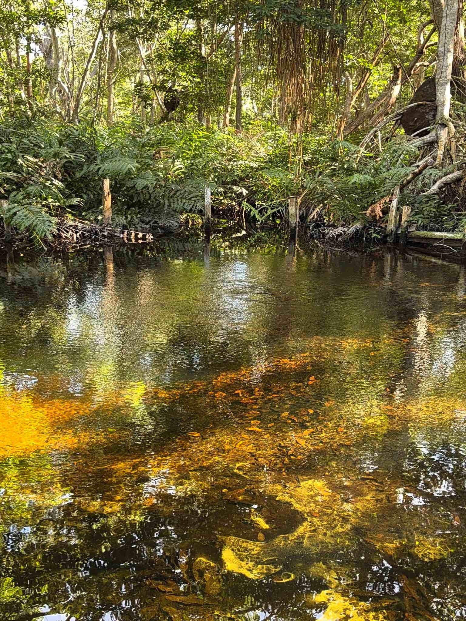 Woda nagle zmienia tu kolor – z mętnej zieleni laguny w przejrzysty turkus. To naturalne źródło słodkiej wody, które wypływa spod ziemi w samym środku mangrowego lasu.